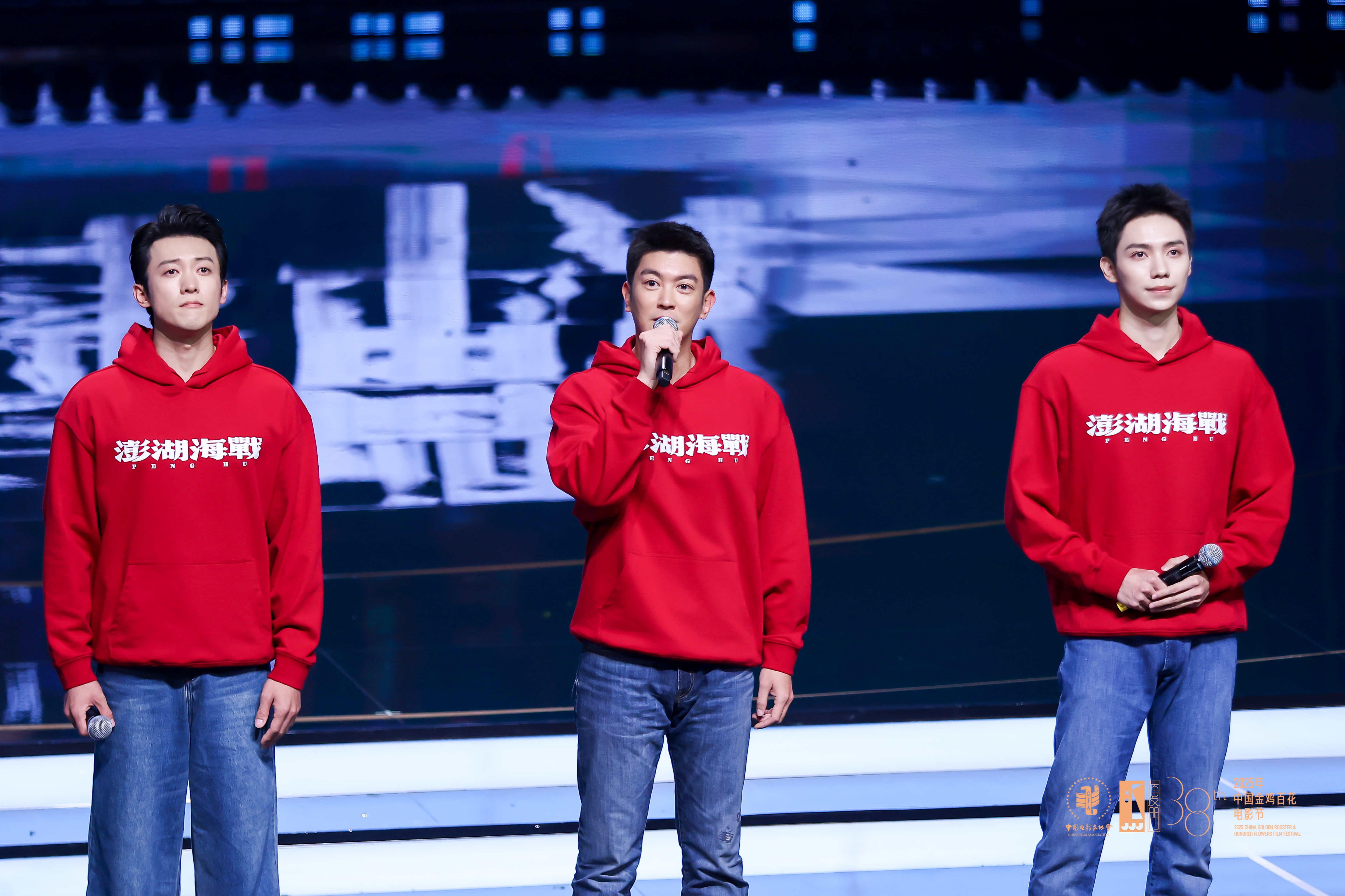 《北回归线以北》《逆转上半场》《澎湖海战》三部影片主创来到现场推介。《澎湖海战》是由郑保瑞执导,杜家毅、黎莉莉、贺信担任编剧,王学圻、杜江领衔主演,易烊千玺特别主演,侯雯元、罗一舟主演的战争电影。演员杜江、侯雯元、罗一舟为电影打call,他们表示:“我们付出所有的努力,希望这部电影经得起时间的考验,也希望大家能够更加了解澎湖海战这段历史。”据悉,电影《澎湖海战》将于2026年上映。