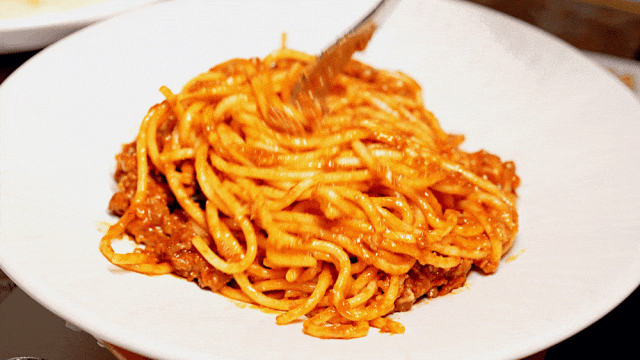 【和牛肉酱意大利面】是传统意式的主食代表。店里的这款意面,用到澳洲和牛碎+自家熬制的番茄酱,制成传统意式风格肉酱,还原了意大利最经典本土风味的同时,又不失新意~