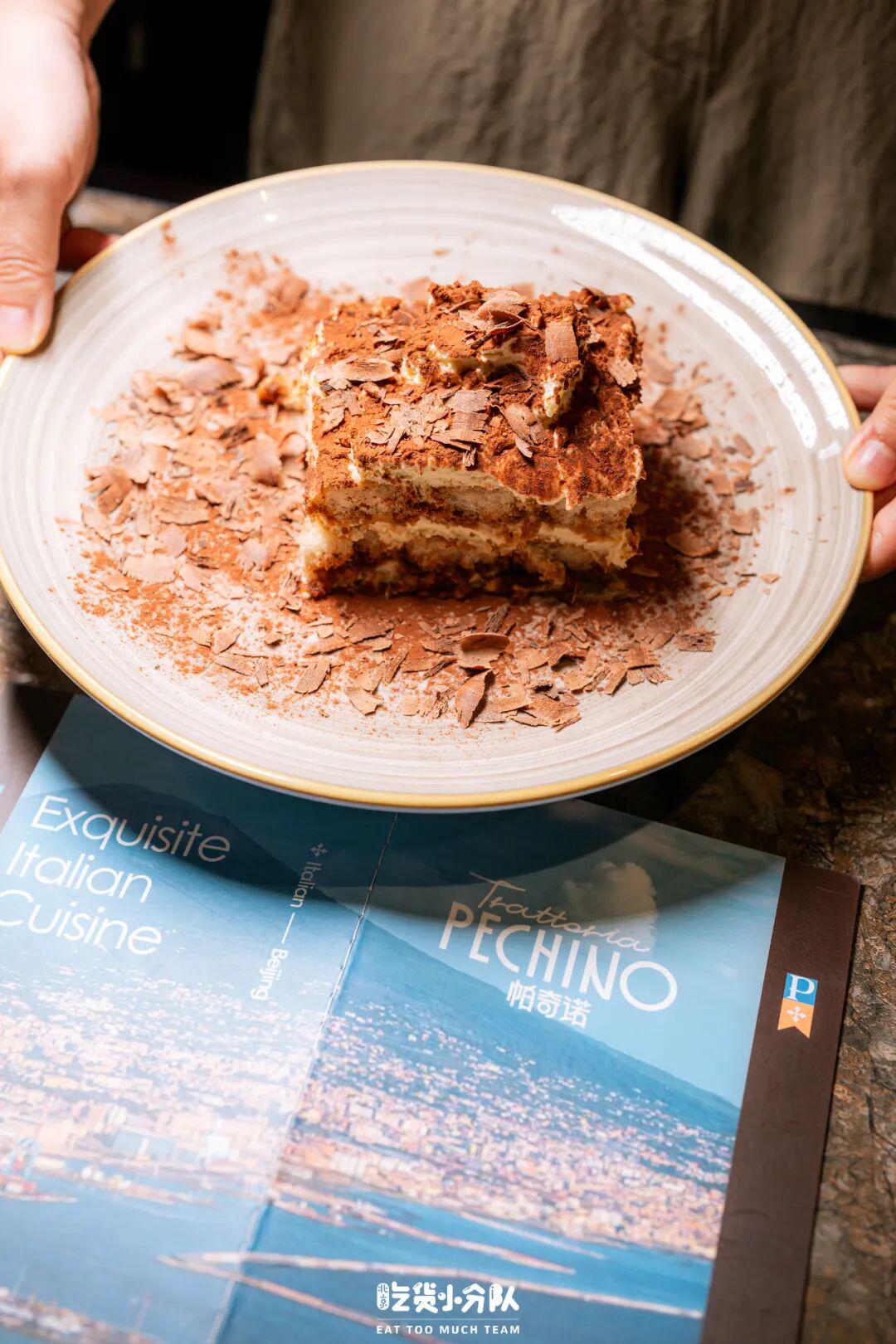 提拉米苏也是意大利餐厅的保留曲目,帕奇诺也不例外。店里的【传统提拉米苏】吃起来非常细密顺滑,一勺下去送入口中,能尝到巧克力与手指饼干、咖啡酒相融合的味道。下午茶的时间来,搭配一杯拿铁正好。